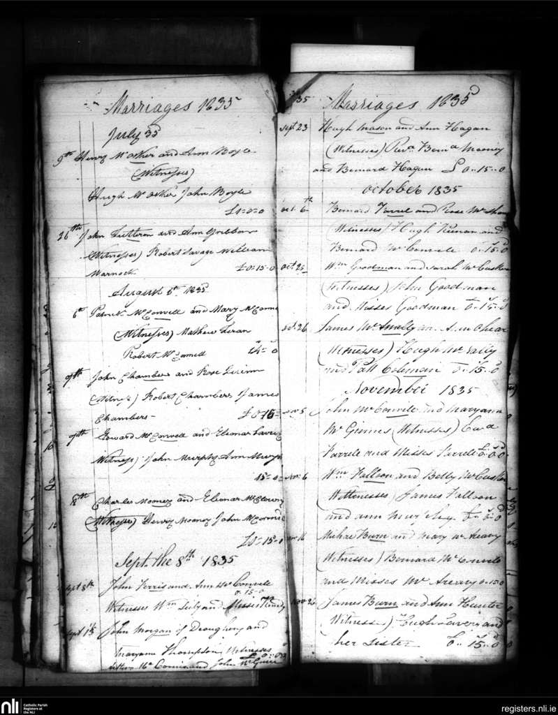 Tullylish; County of Down; Diocese of Dromore. Marriages, July 1835 to Nov. 1835