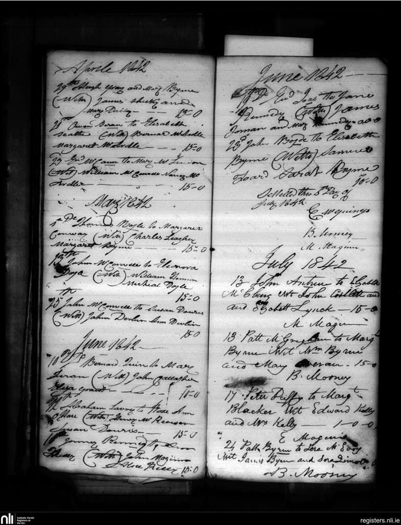 Tullylish; County of Down; Diocese of Dromore. Marriages, Apr. 1842 to July 1842