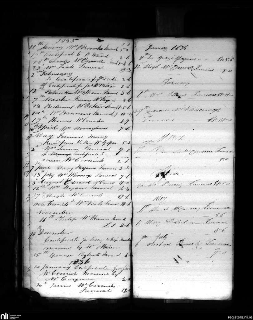 Tullylish; County of Down; Diocese of Dromore. Funerals, Jan. 1835 to July 1836