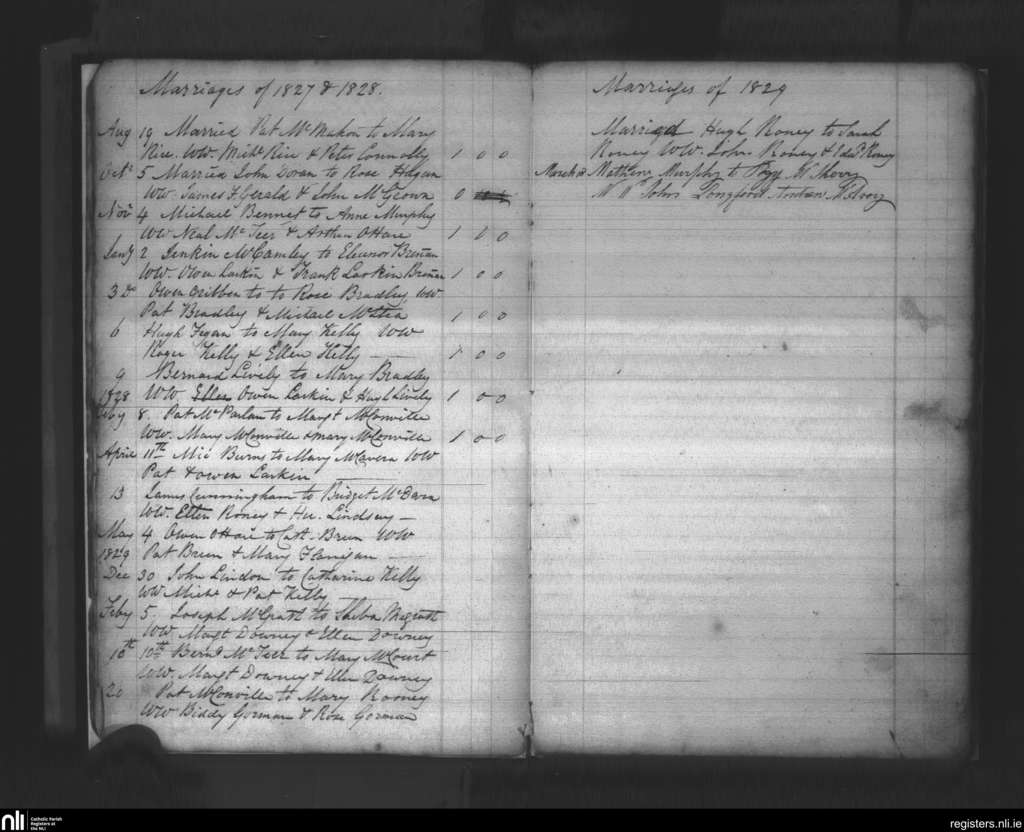 Clonallon; County of Down; Diocese of Dromore. Marriages, Aug. 1827 to Dec. 1829
