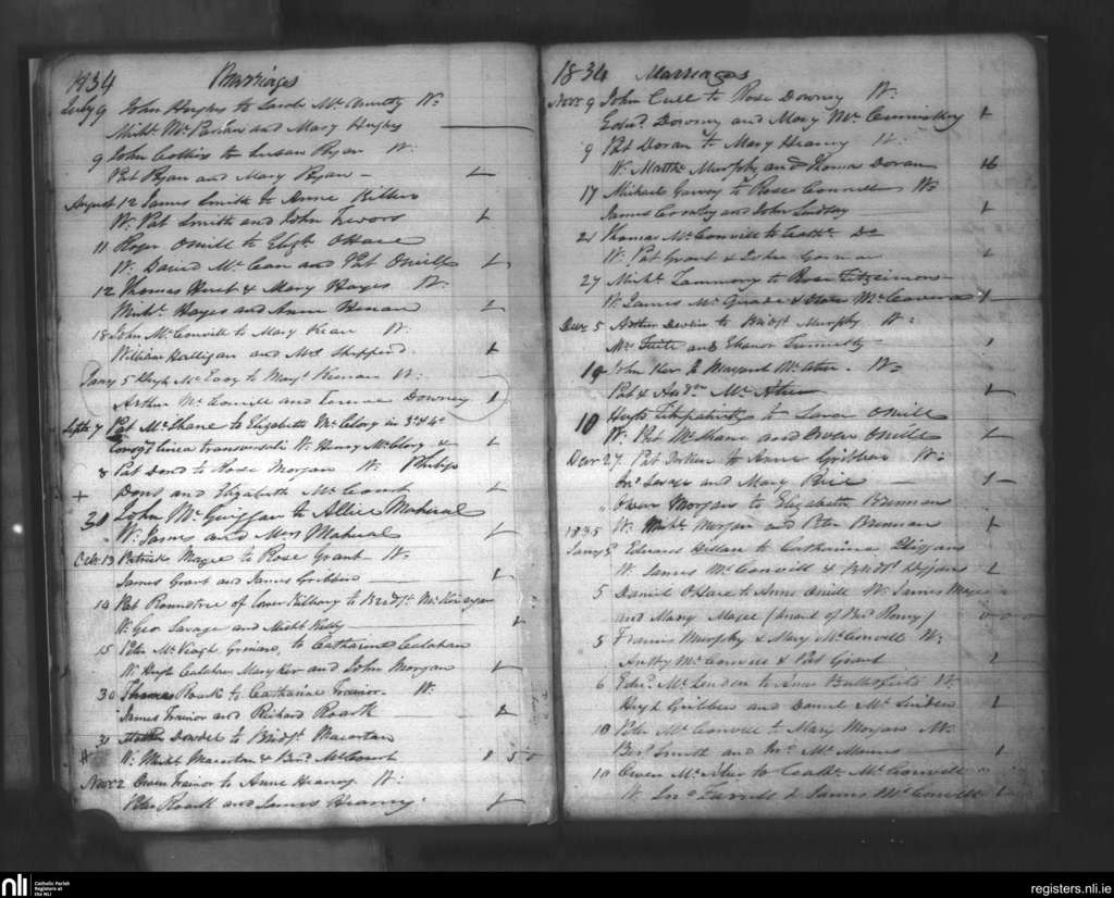 Clonallon; County of Down; Diocese of Dromore. Marriages, July 1834 to Jan. 1835