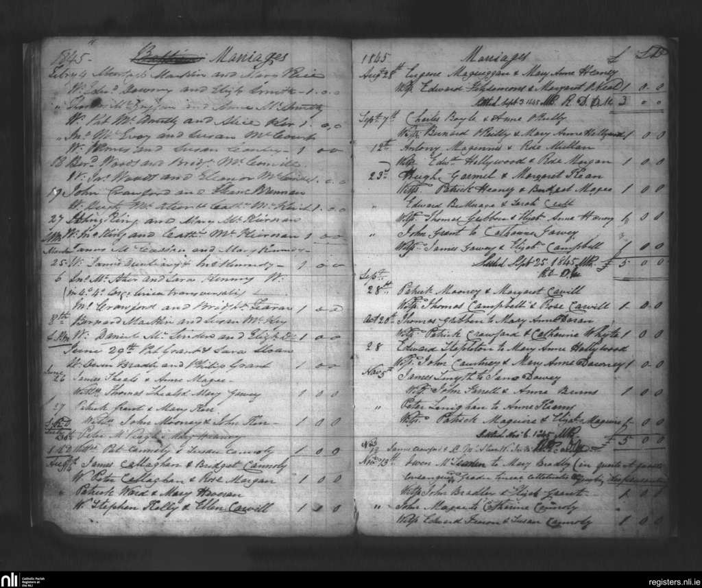 Clonallon; County of Down; Diocese of Dromore. Marriages, Feb. 1845 to Nov. 1845