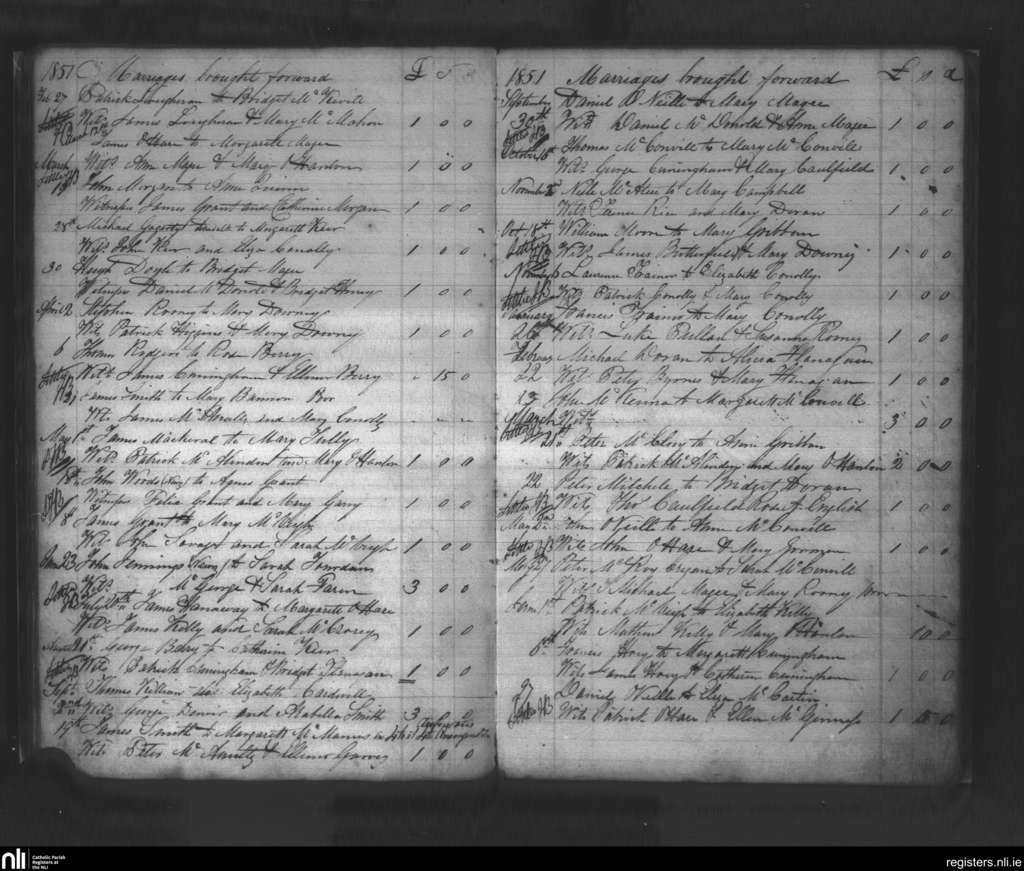 Clonallon; County of Down; Diocese of Dromore. Marriages, Feb. 1851 to June 1852