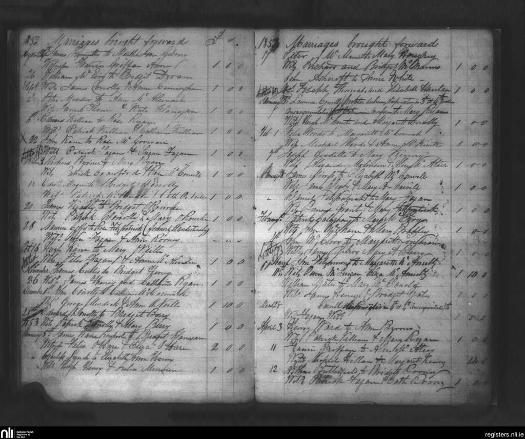 Clonallon; County of Down; Diocese of Dromore. Marriages, Aug. 1852 to Apr. 1853