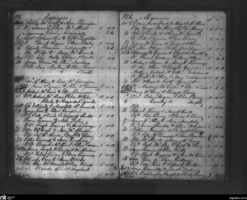 Clonallon; County of Down; Diocese of Dromore. Marriages, Apr. 1856 to Feb. 1857