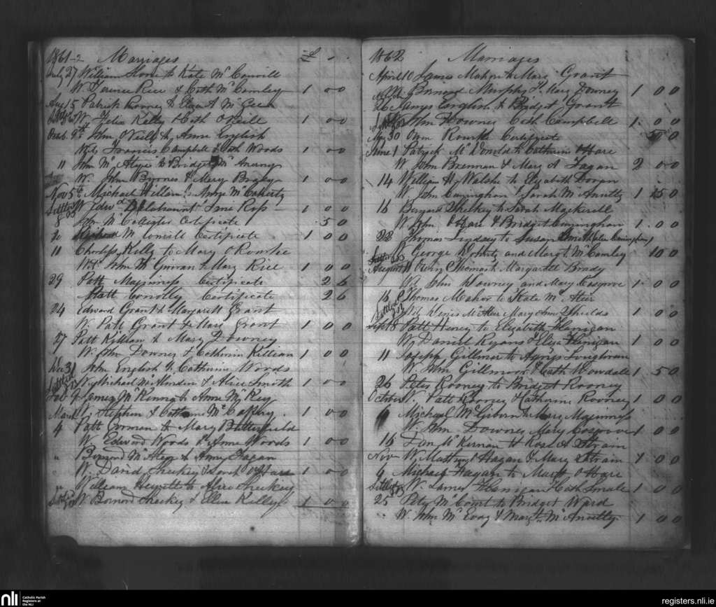Clonallon; County of Down; Diocese of Dromore. Marriages, July 1861 to Nov. 1862
