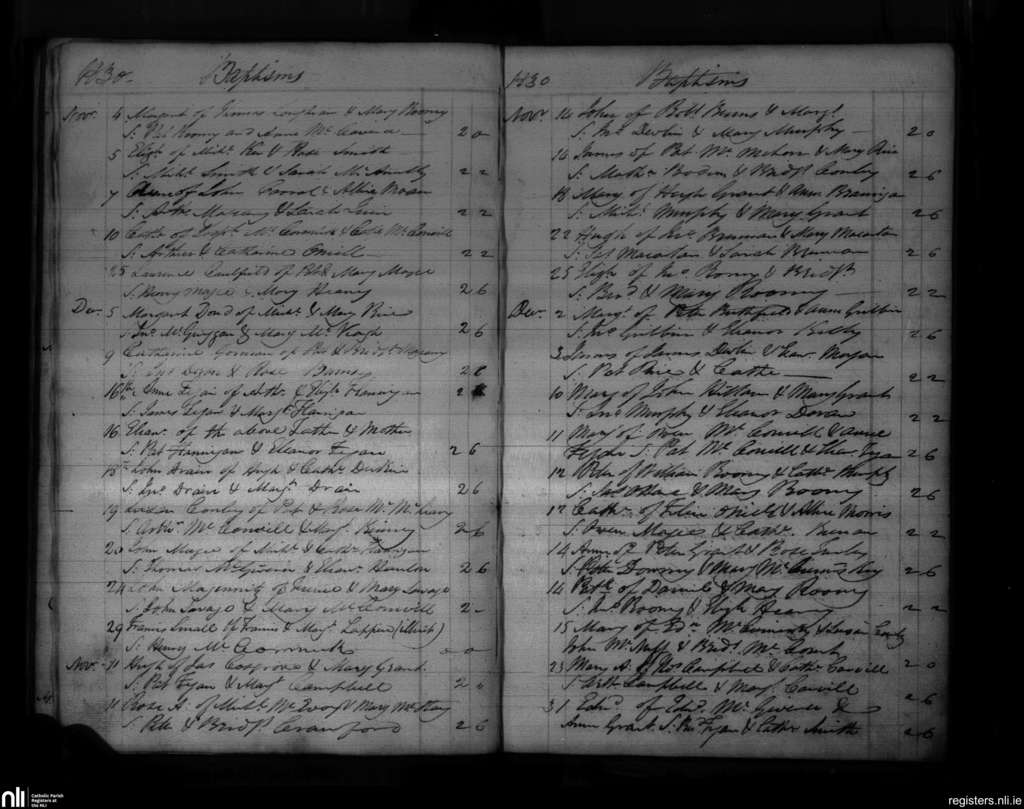 Clonallon; County of Down; Diocese of Dromore. Baptisms, Nov. 1830 to Dec. 1830