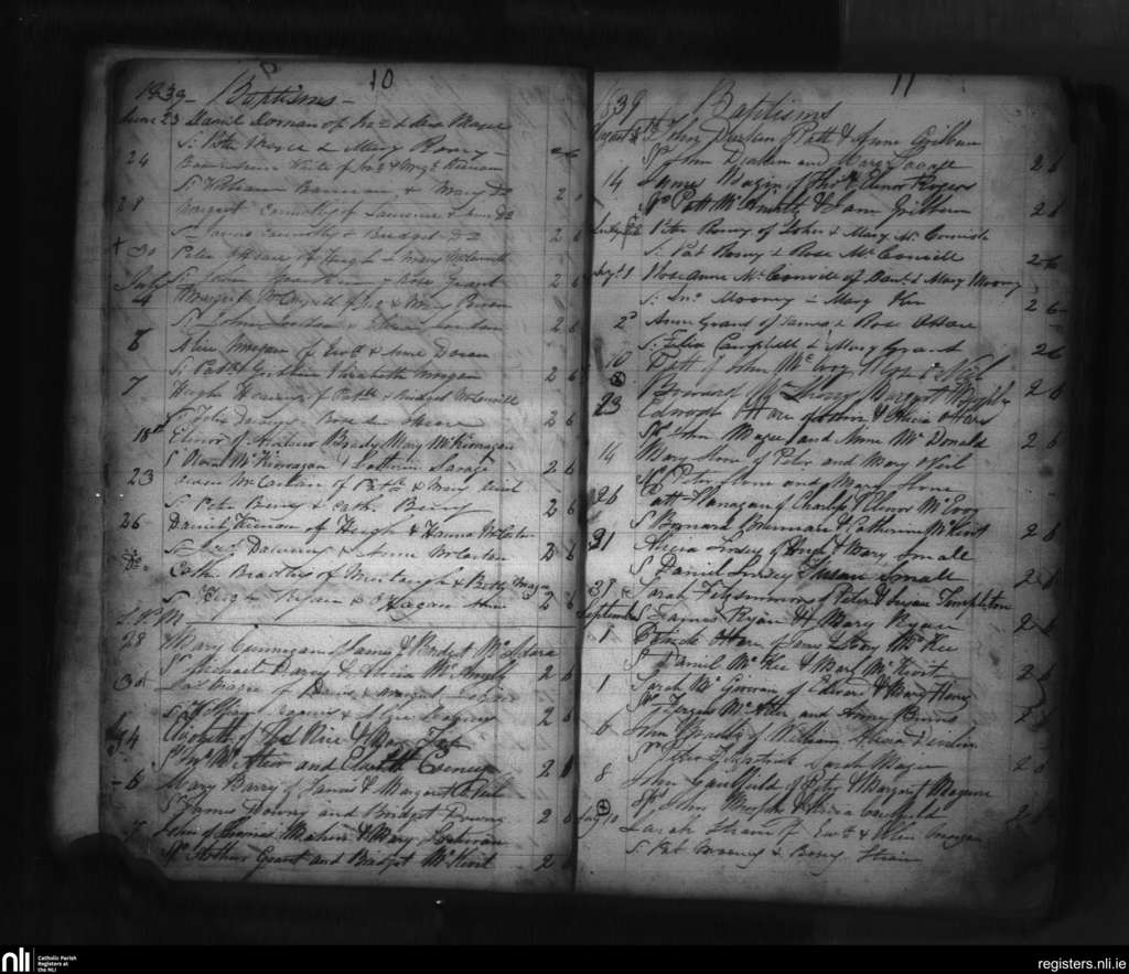 Clonallon; County of Down; Diocese of Dromore. Baptisms, June 1839 to Sep. 1839