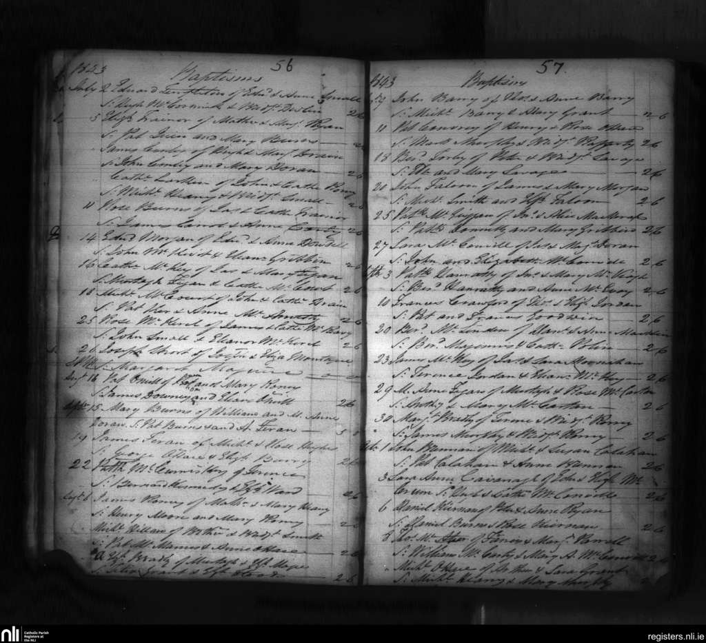 Clonallon; County of Down; Diocese of Dromore. Baptisms, July 1843 to Oct. 1843