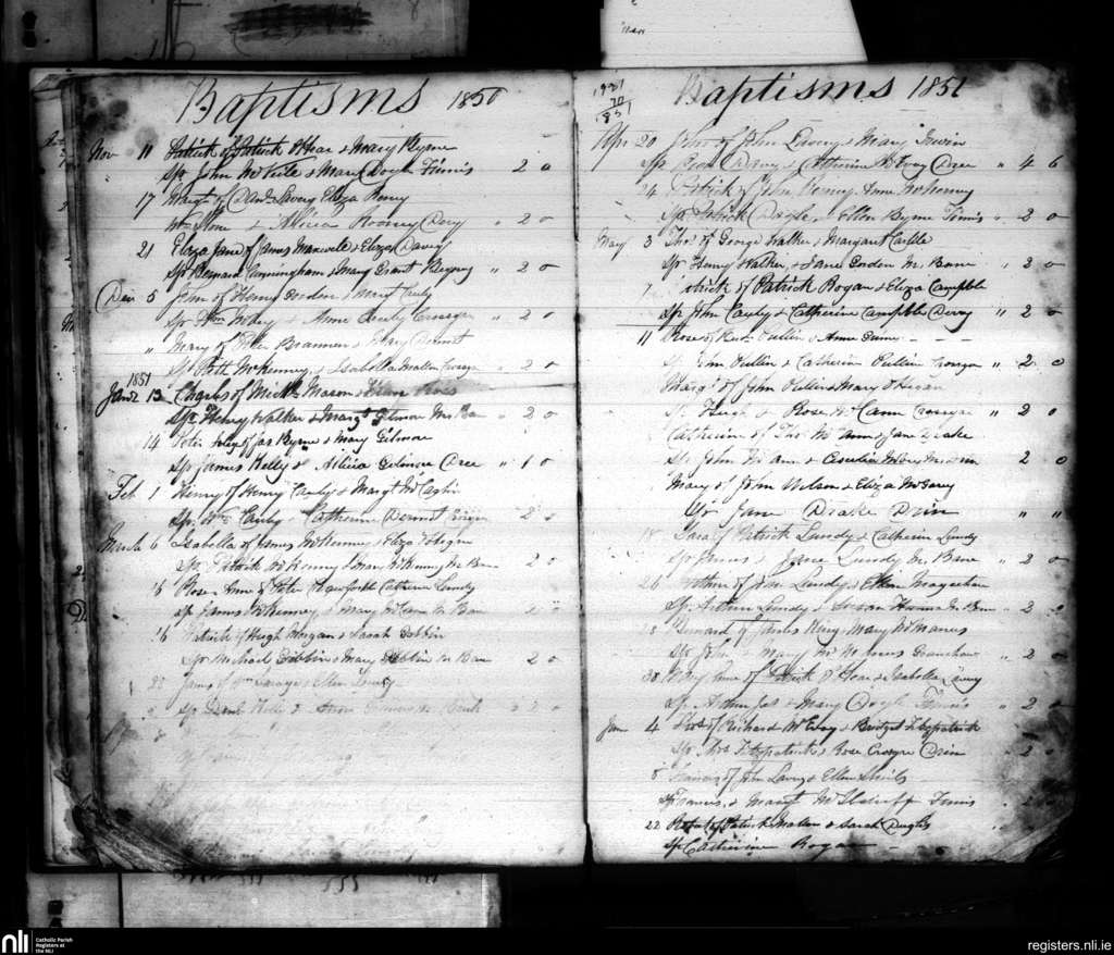 Dromara; County of Down; Diocese of Dromore. Baptisms, Nov. 1850 to June 1851