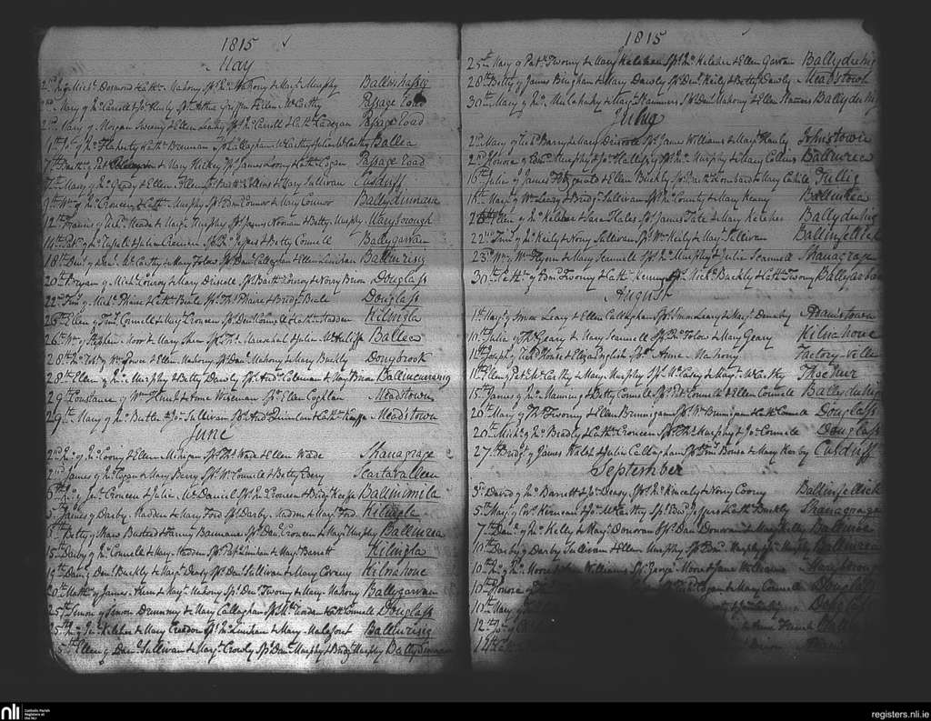 Douglas; County of Cork; Diocese of Cork and Ross. Baptisms, May 1815 to Sep. 1815