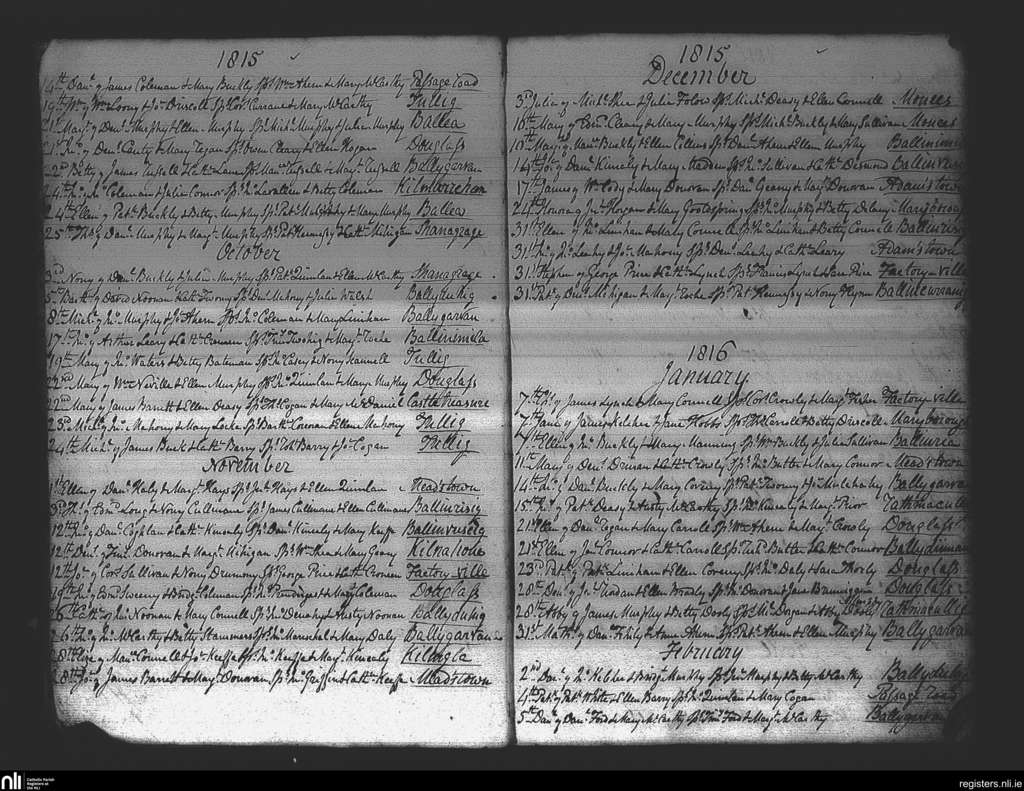 Douglas; County of Cork; Diocese of Cork and Ross. Baptisms, Sep. 1815 to Feb. 1816