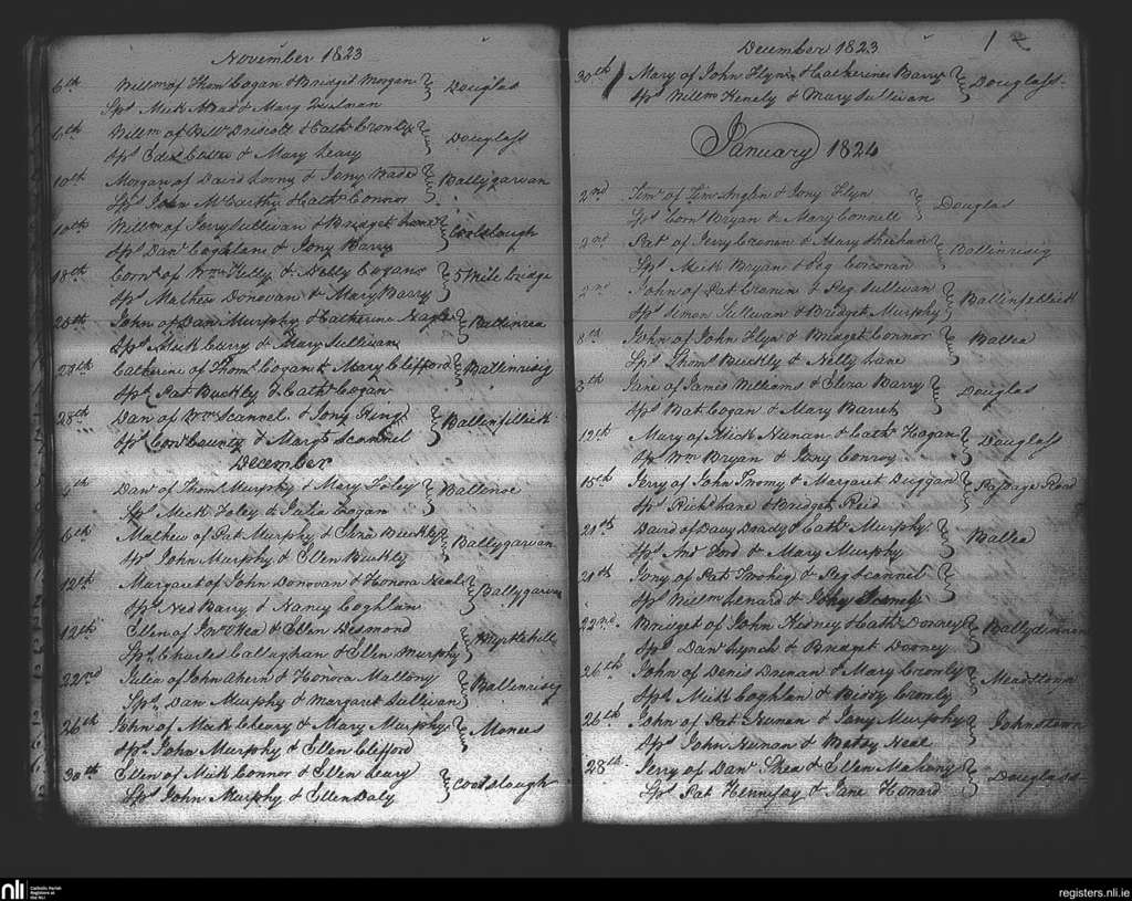 Douglas; County of Cork; Diocese of Cork and Ross. Baptisms, Nov. 1823 to Jan. 1824