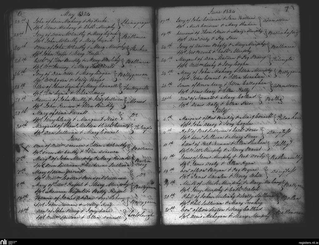 Douglas; County of Cork; Diocese of Cork and Ross. Baptisms, May 1824 to July 1824