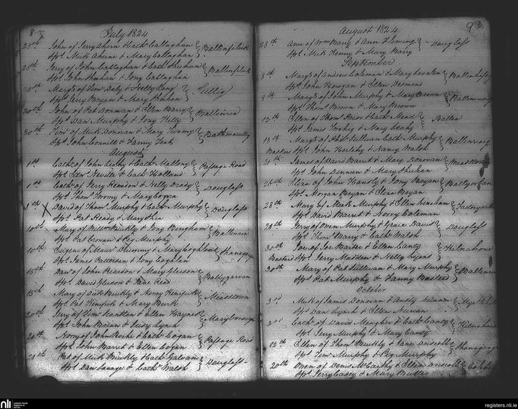 Douglas; County of Cork; Diocese of Cork and Ross. Baptisms, July 1824 to Oct. 1824