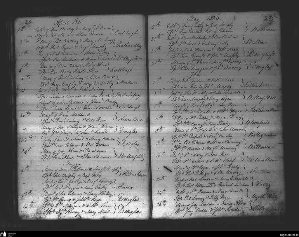 Douglas; County of Cork; Diocese of Cork and Ross. Baptisms, Apr. 1826 to June 1826