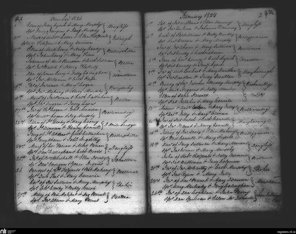 Douglas; County of Cork; Diocese of Cork and Ross. Baptisms, Dec. 1826 to Jan. 1827
