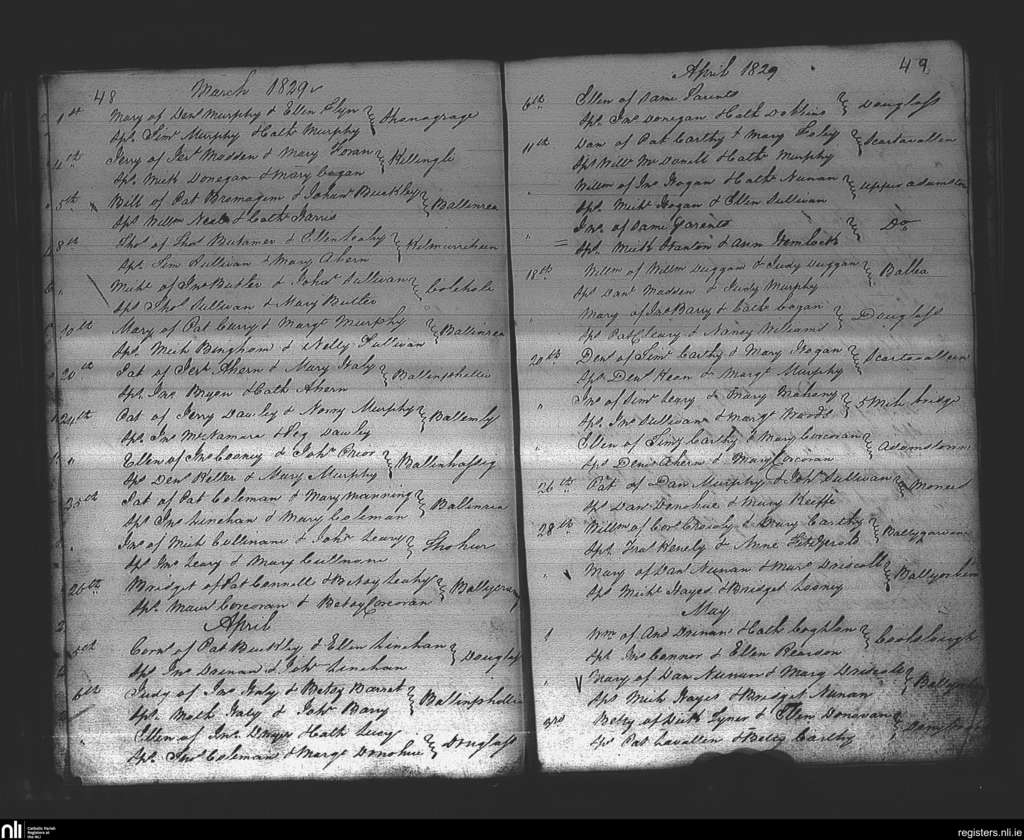 Douglas; County of Cork; Diocese of Cork and Ross. Baptisms, Mar. 1829 to May 1829
