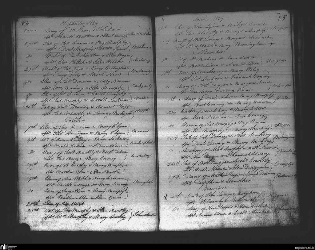 Douglas; County of Cork; Diocese of Cork and Ross. Baptisms, Sep. 1829 to Dec. 1829