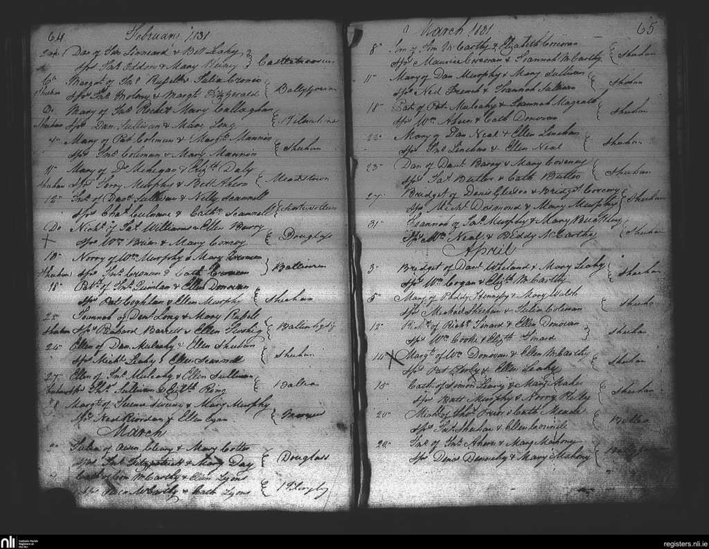 Douglas; County of Cork; Diocese of Cork and Ross. Baptisms, Feb. 1831 to Apr. 1831
