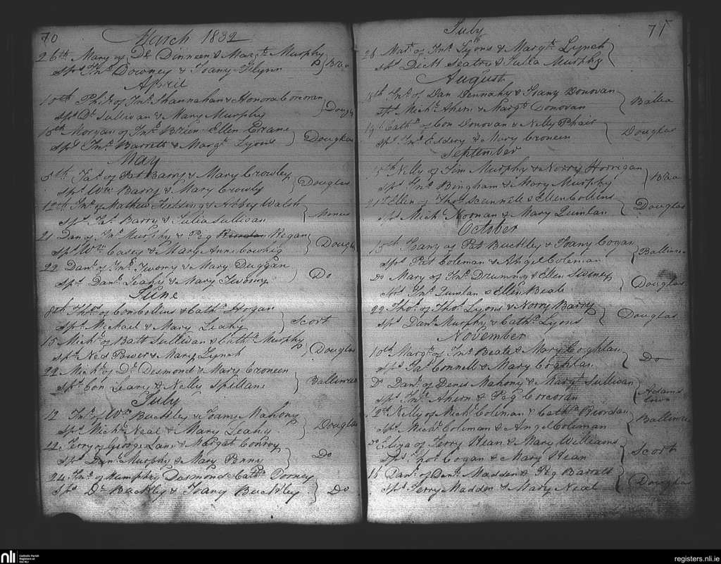 Douglas; County of Cork; Diocese of Cork and Ross. Baptisms, Mar. 1832 to Nov. 1832