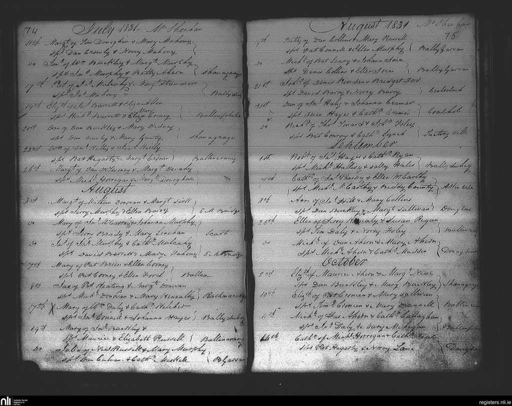 Douglas; County of Cork; Diocese of Cork and Ross. Baptisms, July 1831 to Oct. 1831