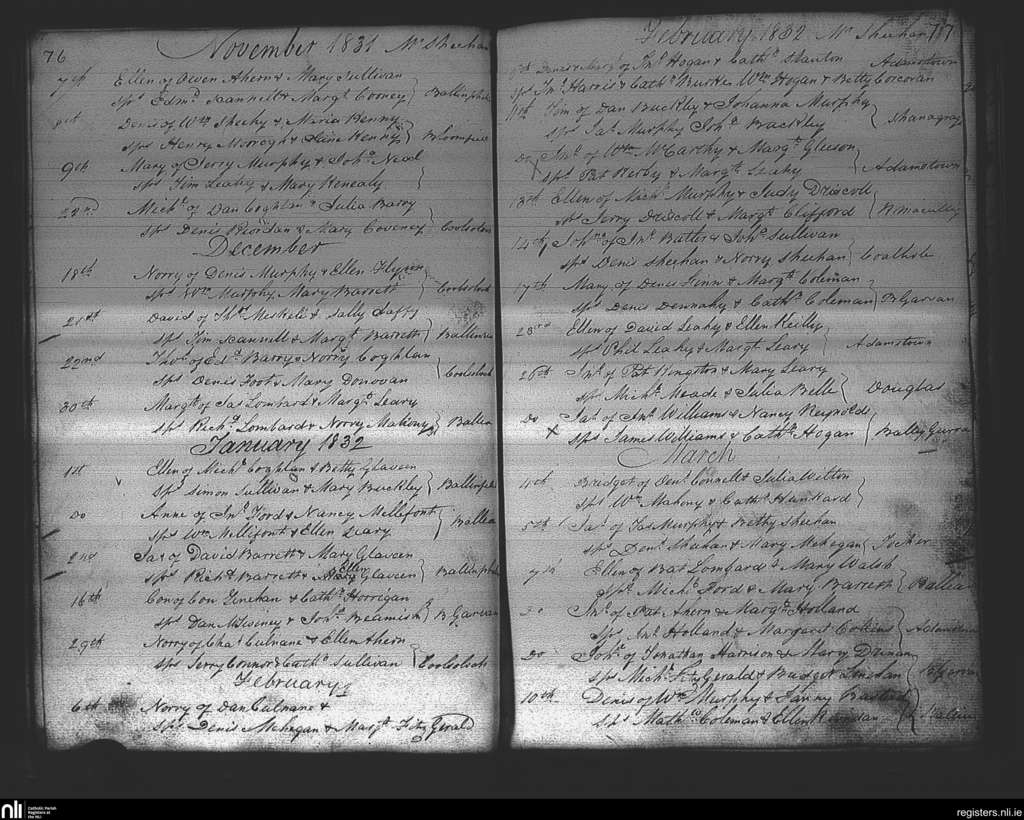 Douglas; County of Cork; Diocese of Cork and Ross. Baptisms, Nov. 1831 to Mar. 1832