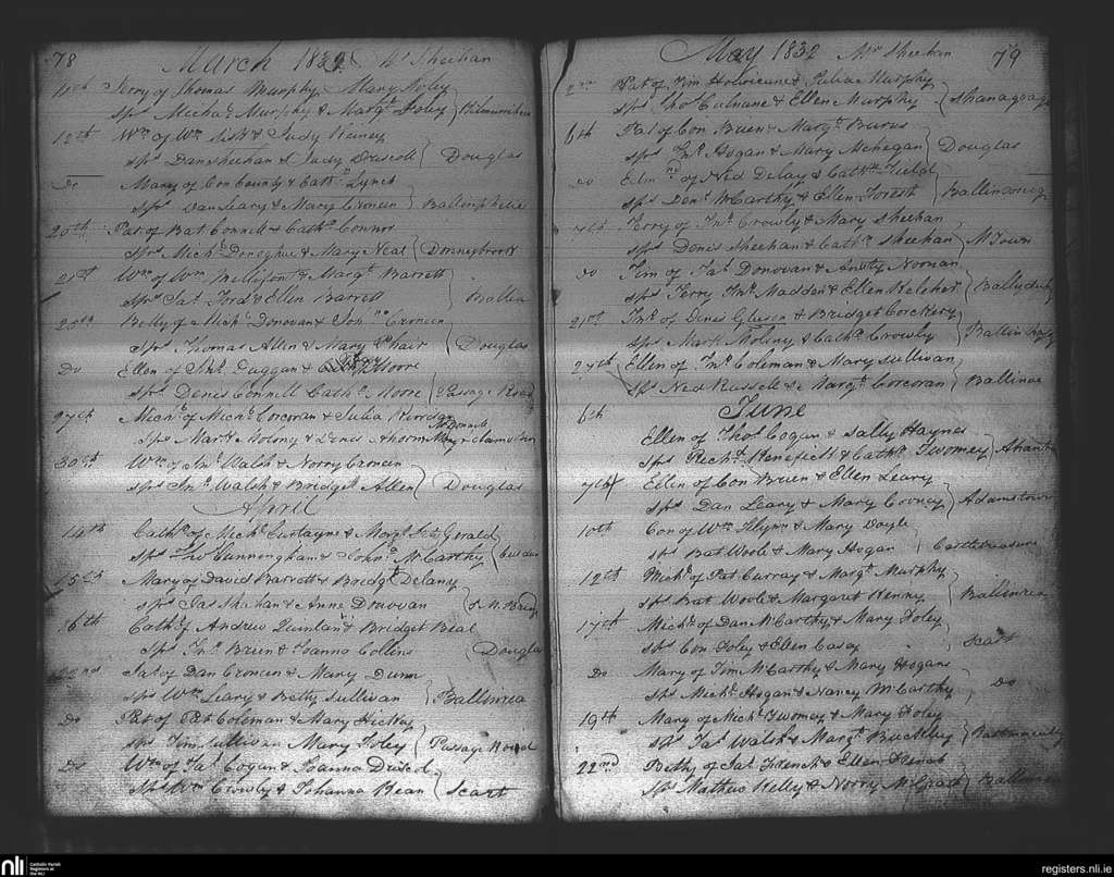 Douglas; County of Cork; Diocese of Cork and Ross. Baptisms, Mar. 1832 to June 1832