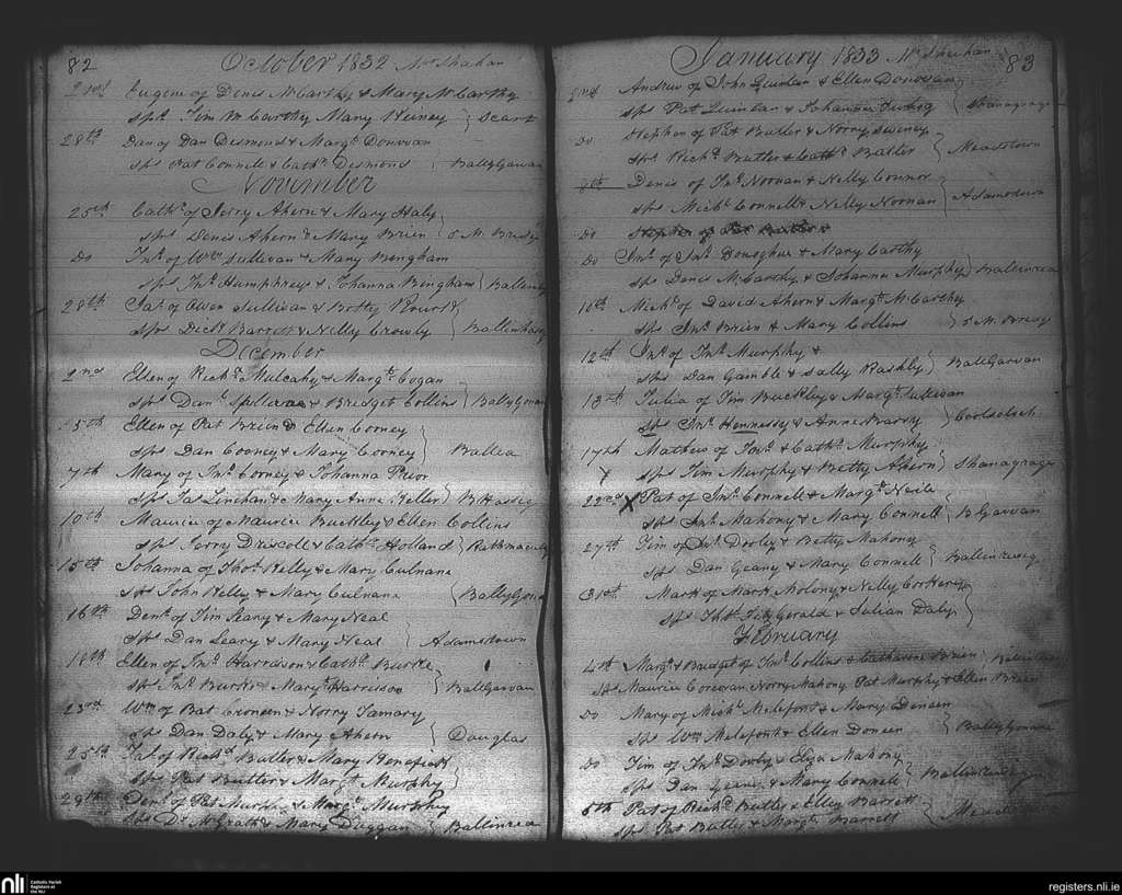 Douglas; County of Cork; Diocese of Cork and Ross. Baptisms, Oct. 1832 to Feb. 1833