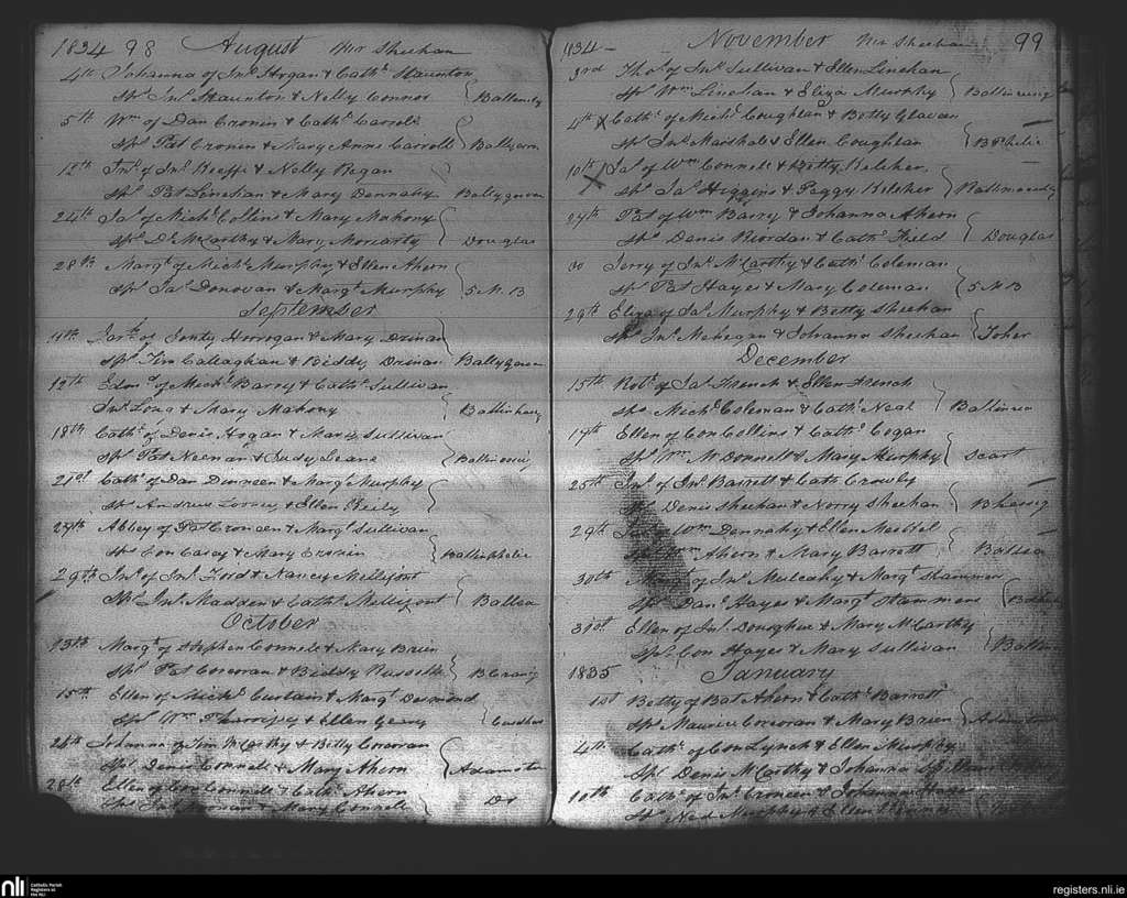 Douglas; County of Cork; Diocese of Cork and Ross. Baptisms, Aug. 1834 to Jan. 1835