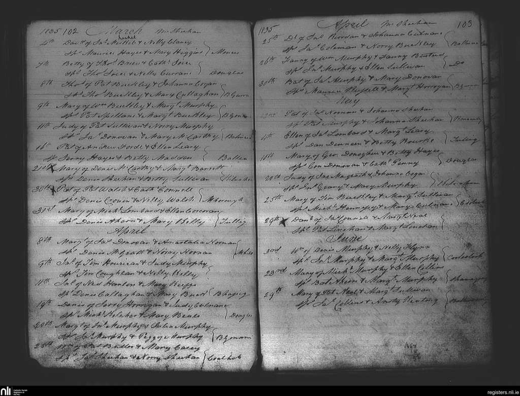 Douglas; County of Cork; Diocese of Cork and Ross. Baptisms, Mar. 1835 to June 1835