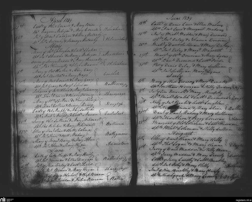 Douglas; County of Cork; Diocese of Cork and Ross. Baptisms, Apr. 1839 to Aug. 1839