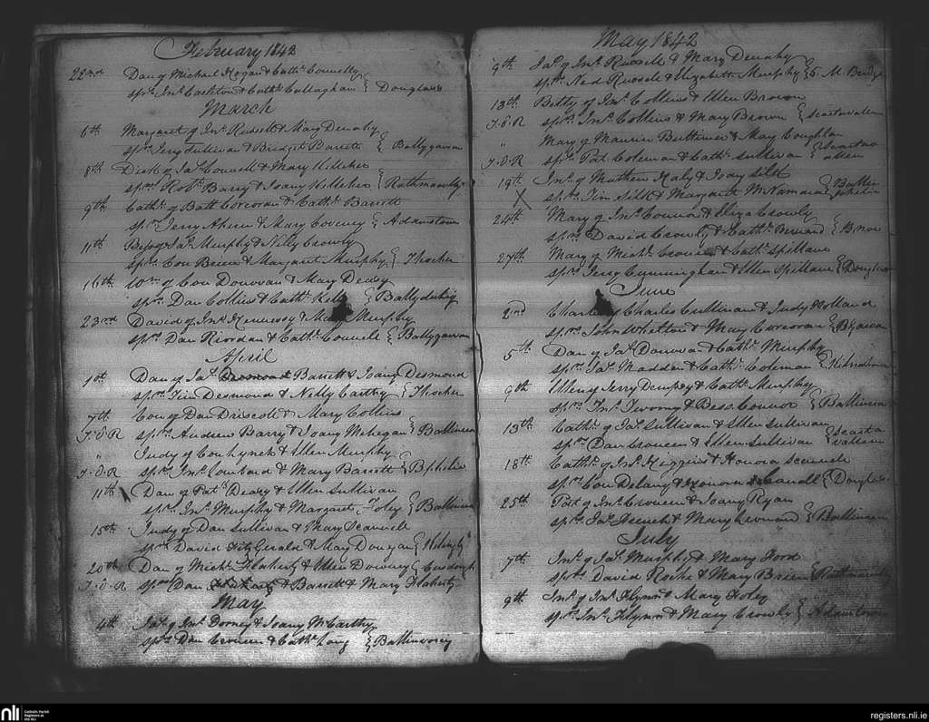 Douglas; County of Cork; Diocese of Cork and Ross. Baptisms, Feb. 1842 to July 1842