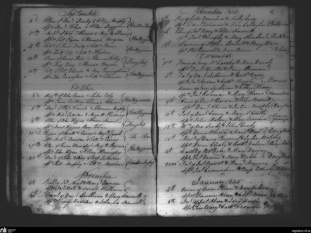 Douglas; County of Cork; Diocese of Cork and Ross. Baptisms, Sep. 1844 to Jan. 1845