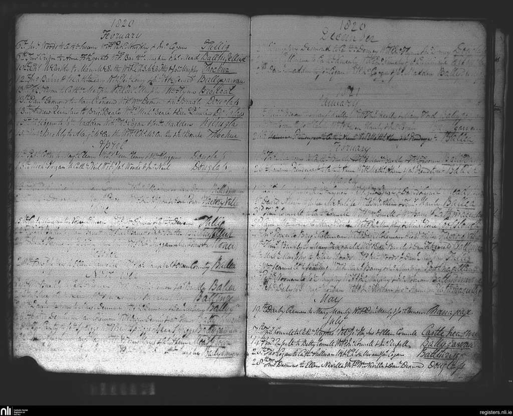 Douglas; County of Cork; Diocese of Cork and Ross. Marriages, Feb. 1820 to July 1821