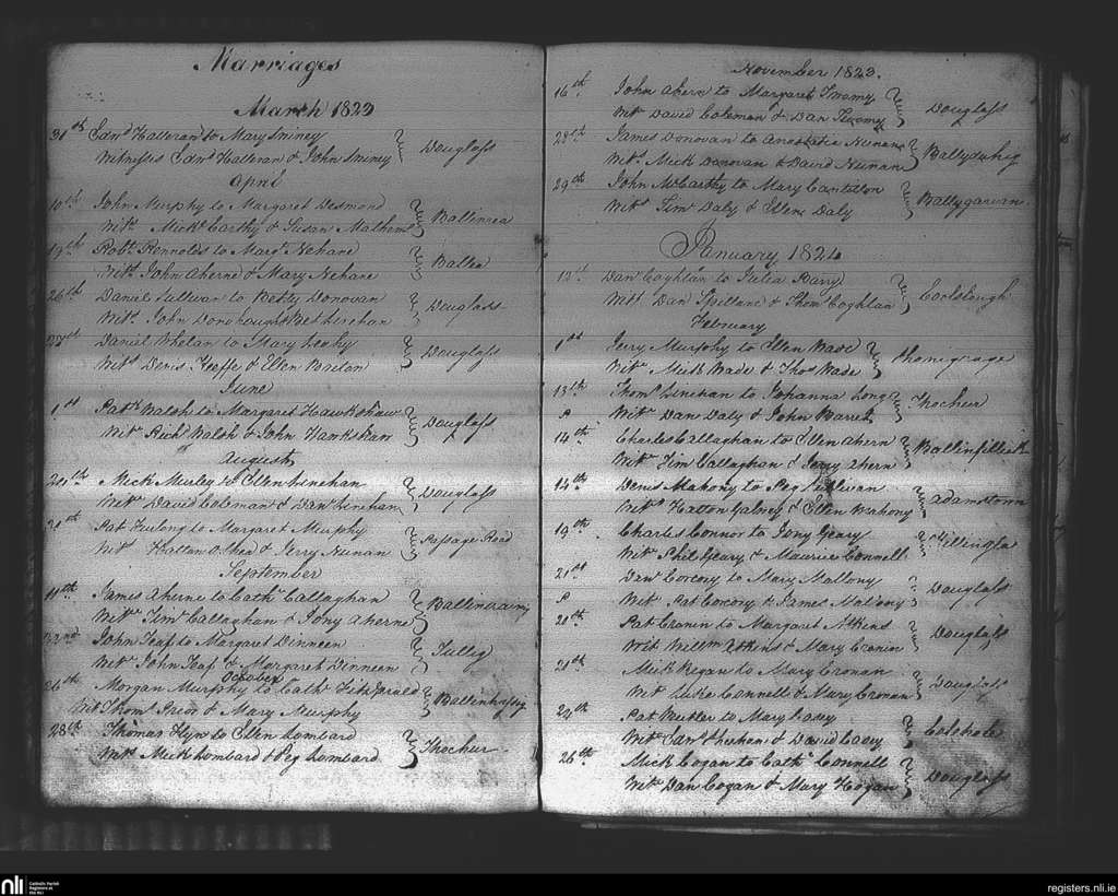Douglas; County of Cork; Diocese of Cork and Ross. Marriages, Mar. 1823 to Feb. 1824