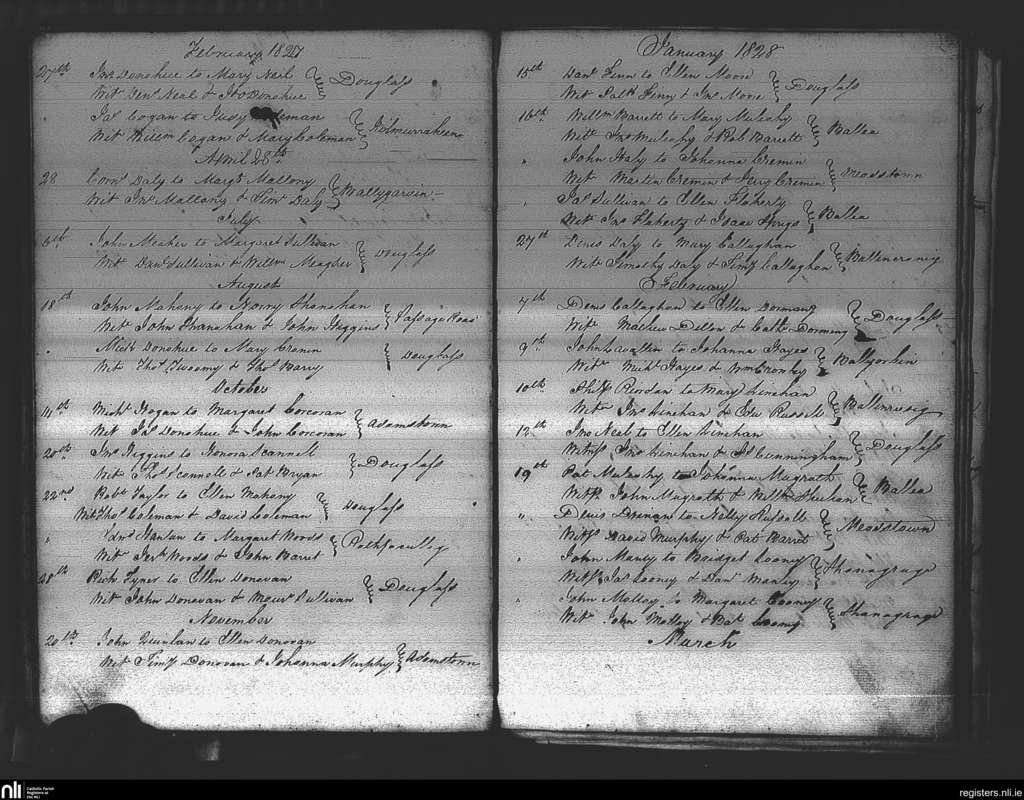 Douglas; County of Cork; Diocese of Cork and Ross. Marriages, Feb. 1827 to Feb. 1828