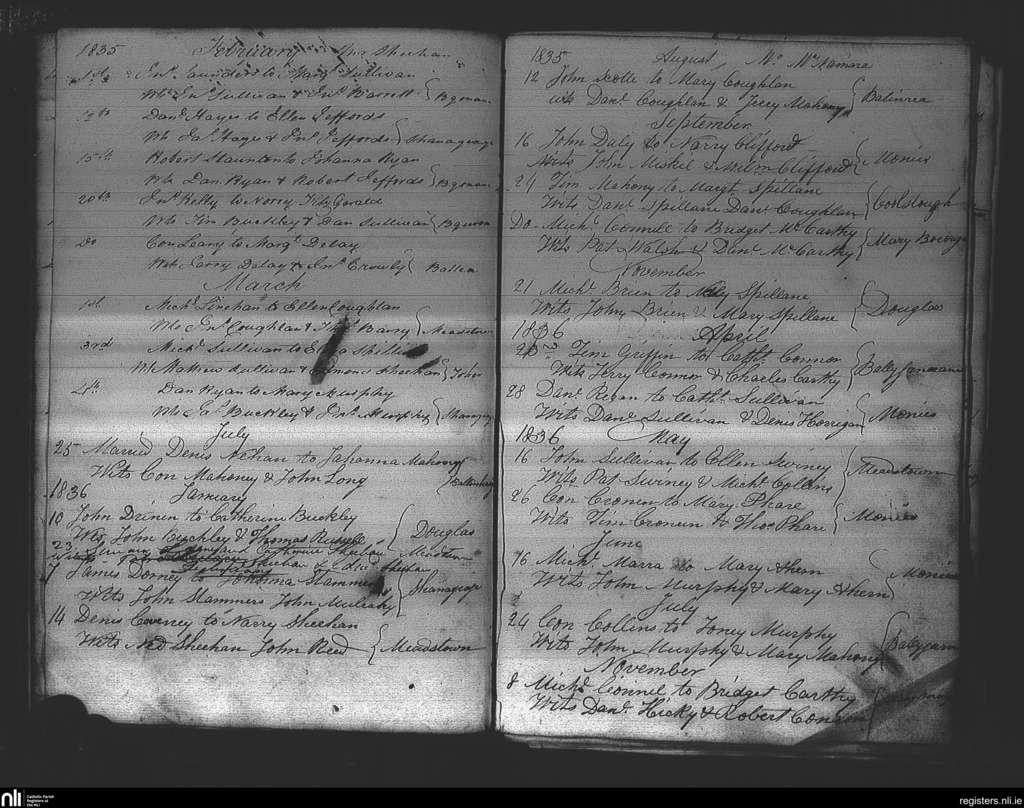 Douglas; County of Cork; Diocese of Cork and Ross. Marriages, Feb. 1835 to Nov. 1836