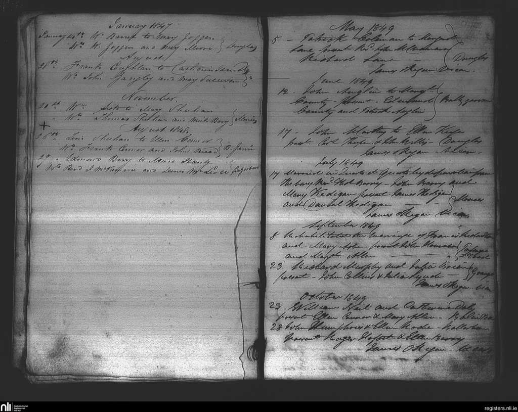 Douglas; County of Cork; Diocese of Cork and Ross. Marriages, Jan. 1847 to Oct. 1849