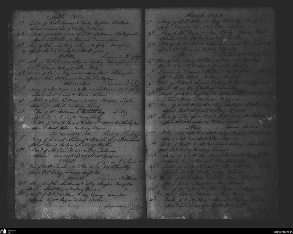 Douglas; County of Cork; Diocese of Cork and Ross. Baptisms, Sep. 1852 to May 1853