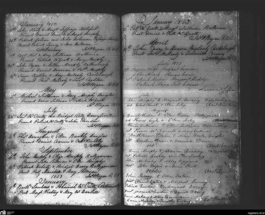 Douglas; County of Cork; Diocese of Cork and Ross. Marriages, Jan. 1852 to Oct. 1853