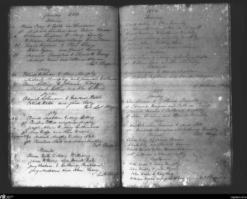 Douglas; County of Cork; Diocese of Cork and Ross. Marriages, Jan. 1854 to Sep. 1855