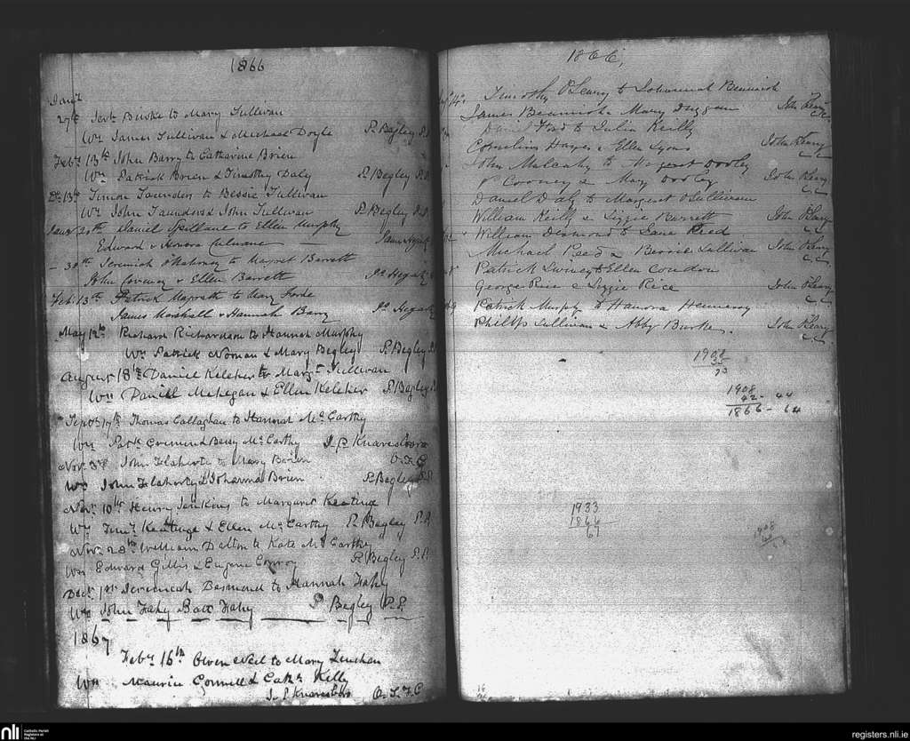 Douglas; County of Cork; Diocese of Cork and Ross. Marriages, Jan. 1866 to Feb. 1867
