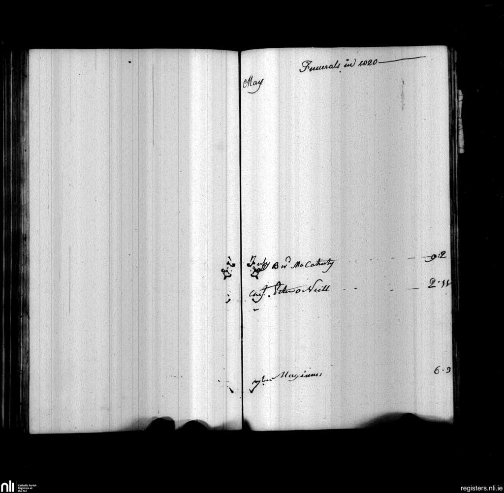 Newry; County of Down, Armagh; Diocese of Dromore. Funerals, May 1820 to Sep. 1820
