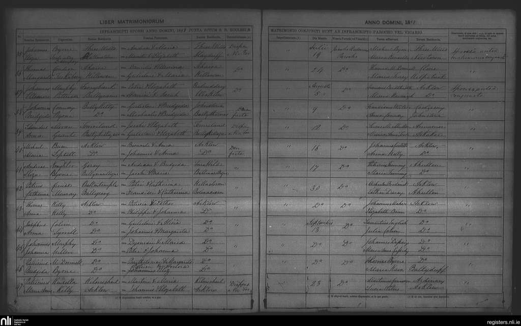 Arklow; County of Wexford, Wicklow; Archdiocese of Dublin. Marriages, July 1858 to Sep. 1858