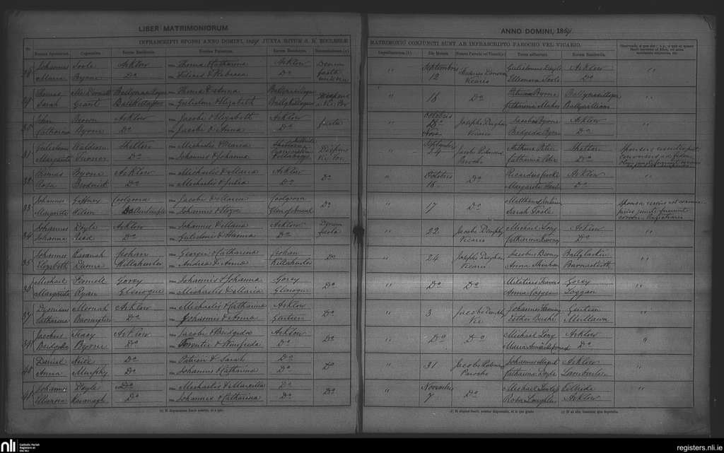 Arklow; County of Wexford, Wicklow; Archdiocese of Dublin. Marriages, Sep. 1859 to Nov. 1859