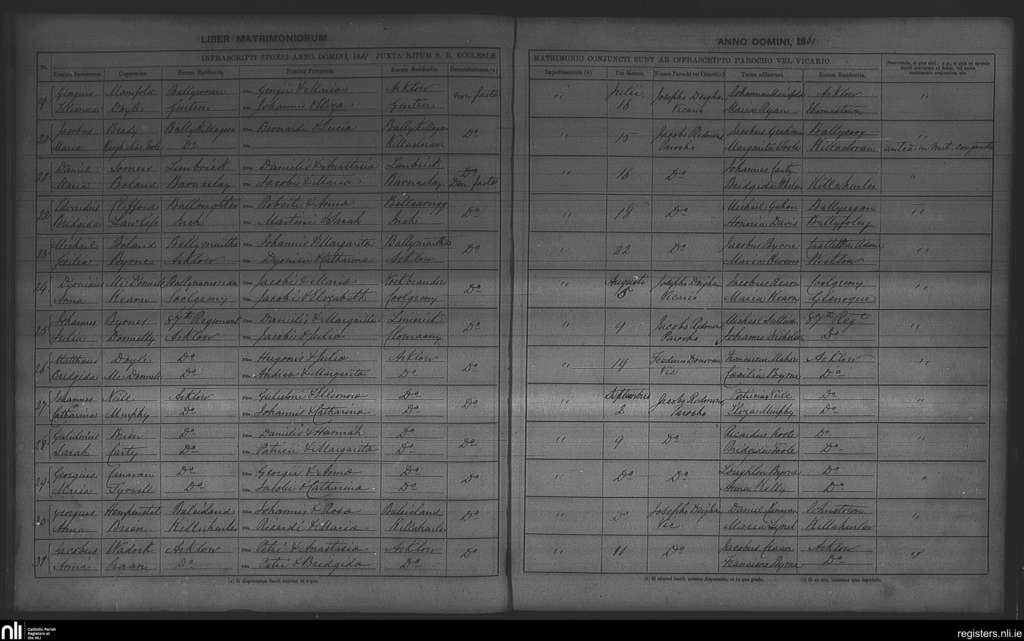 Arklow; County of Wexford, Wicklow; Archdiocese of Dublin. Marriages, July 1861 to Sep. 1861