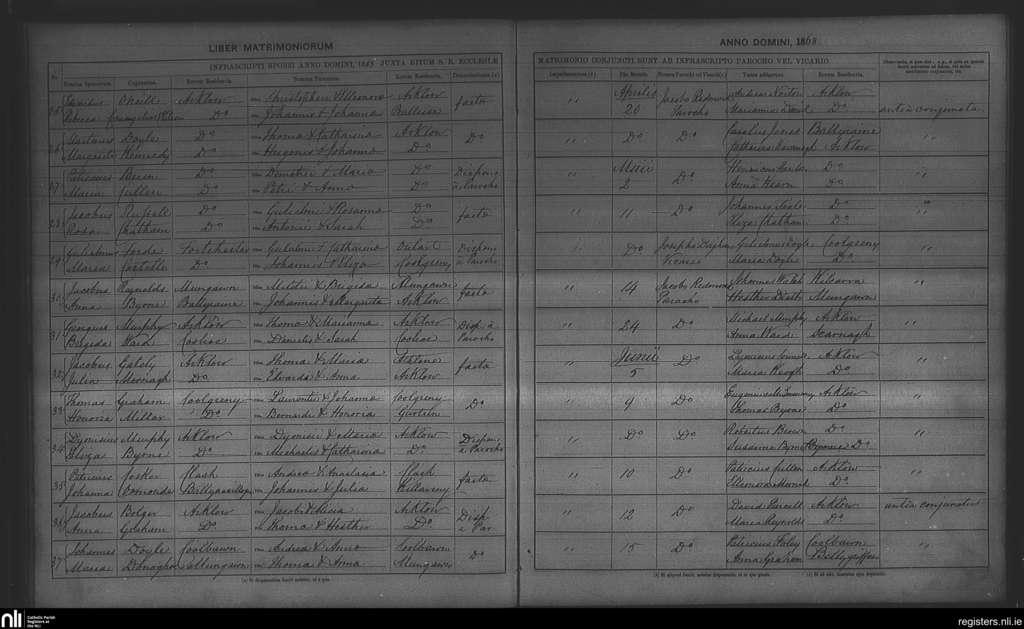 Arklow; County of Wexford, Wicklow; Archdiocese of Dublin. Marriages, Apr. 1863 to June 1863