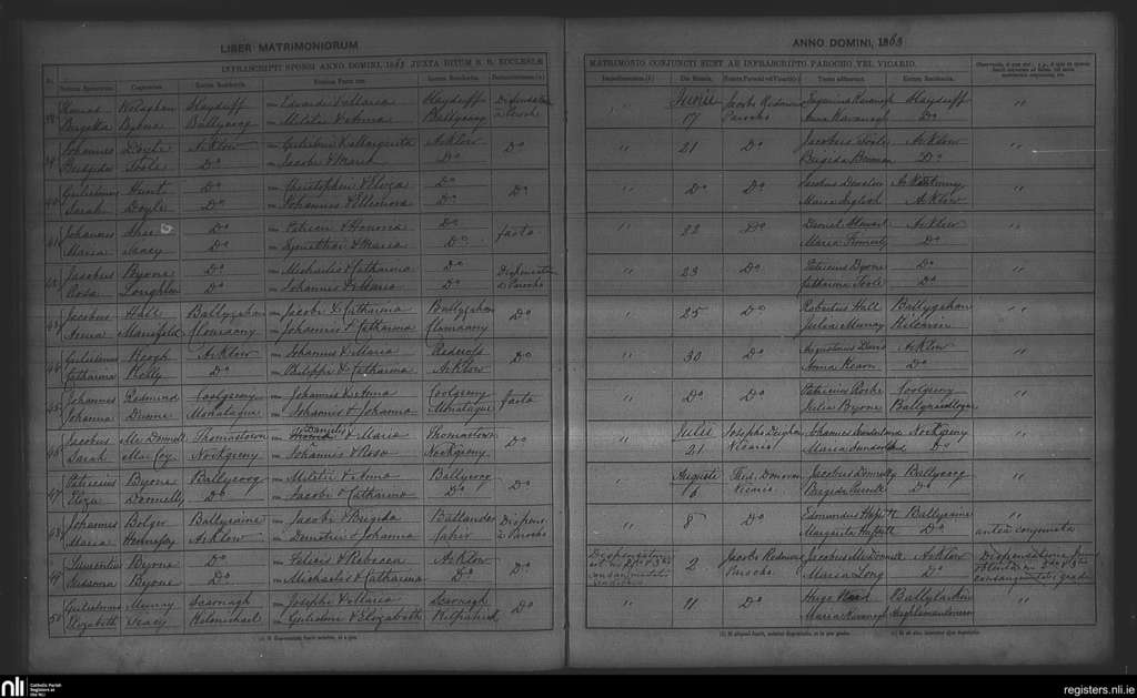 Arklow; County of Wexford, Wicklow; Archdiocese of Dublin. Marriages, June 1863 to Aug. 1863