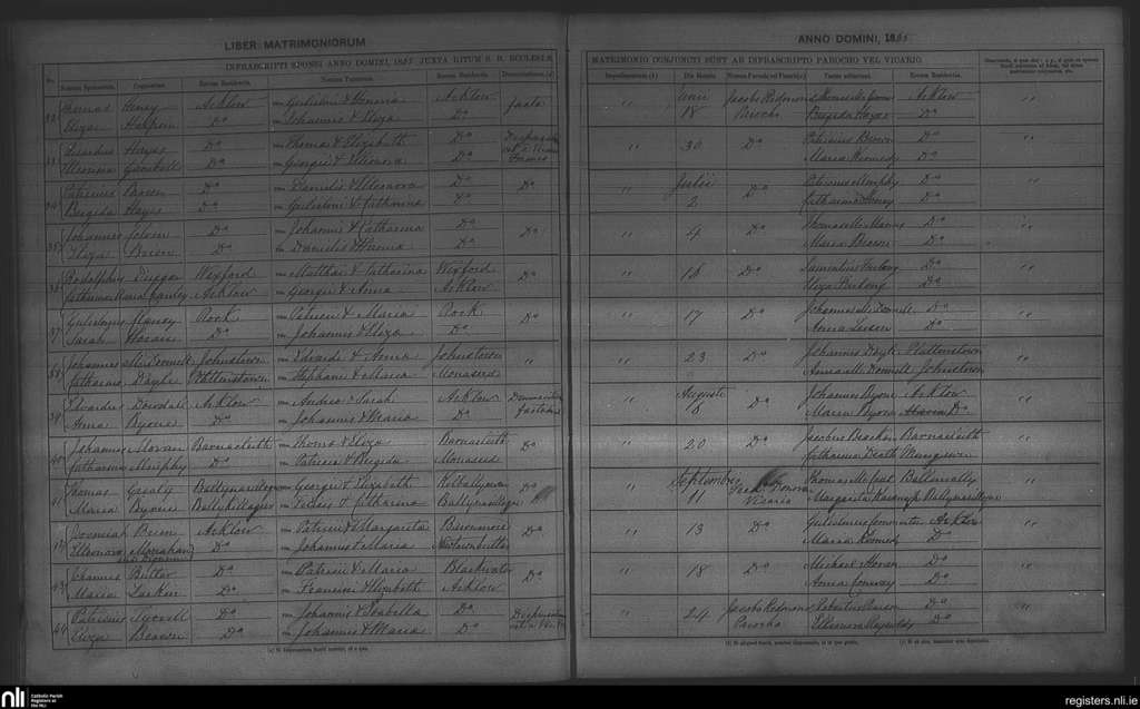 Arklow; County of Wexford, Wicklow; Archdiocese of Dublin. Marriages, June 1865 to Sep. 1865